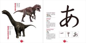 かっこいい恐竜の隣に並んだ大きなひらがなが子どもの目を引き付ける!