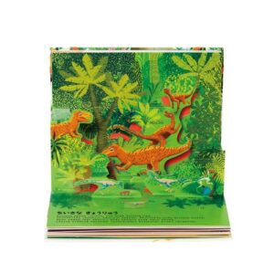 3Dポップアップを使用したリアルな恐竜たちを、科学的に解説する仕掛け絵本。恐竜が生きていた5つの時代を、様々な角度から解き明かしてくれます。