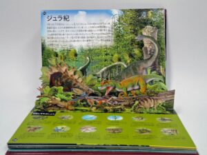 | 特徴 | ・しかけをめくって楽しむ仕掛け絵本 ・恐竜の歴史や生態が学べる |